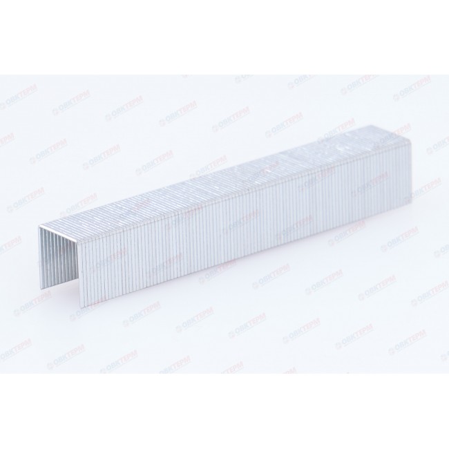 Скобы прямоугольной формы, изготовлены из углеродистой стали, обладают высокой прочностью. Используются для соединения изделий из дерева, фанеры, картона, ДСП, оргалита, для обшивки мебели тканями с помощью специальных скобозабивных пистолетов (степлеров). Скобы обеспечивают идеальную фиксацию и надежность соединения. Длина скобы составляет 12 мм, ширина — 11,3 мм, толщина — 0,75 мм. Тип 53. Упаковка содержит 1000 штук.