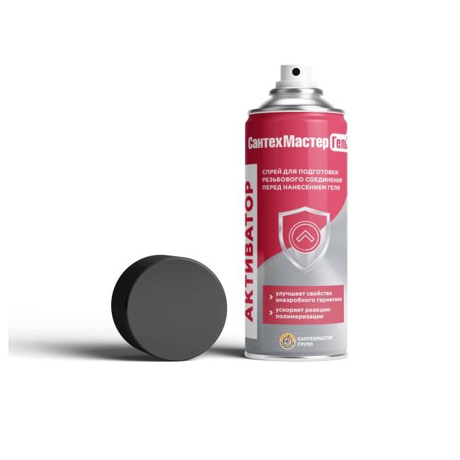 Сантех Мастер Гель Активатор создан специально для ускорения полимеризации линейки анаэробных гелей-герметиков СантехМастер Гель для резьбовых и фланцевых соединений. ПРЕИМУЩЕСТВА: Ускорение реакции первичной полимеризации геля. Ускорение полимеризации в пограничных условиях. Ускорение полимеризации в соединениях с малоактивными металлами (оцинковка, нержавейка и пр.)
