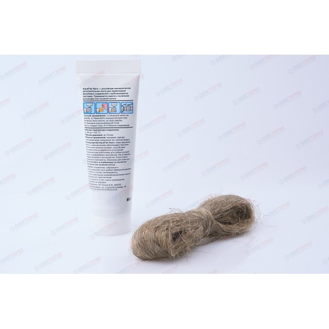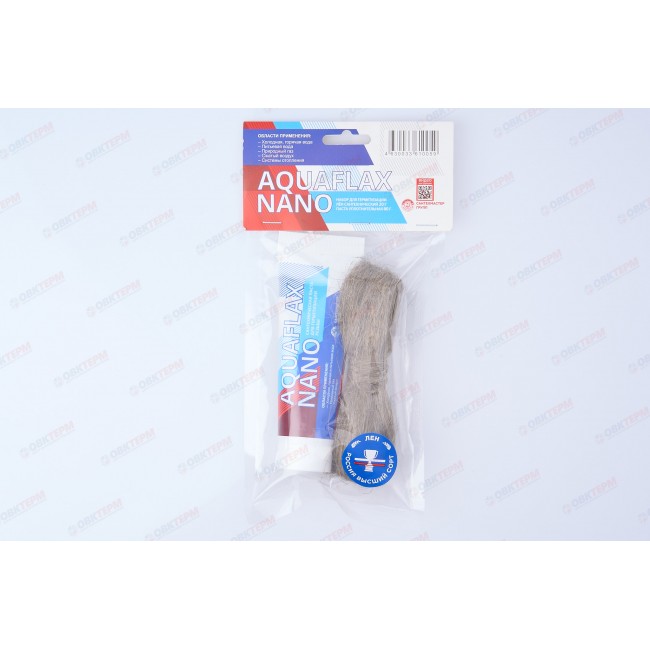 Набор паста 80 г + российский лён 20 г предназначены для герметизации резьбовых соединений в различных средах. Специально разработанная формула пасты AQUAFLAX NANO имеет наночастицы, которые позволяют быстро и эффективно проникать в структуру льна и надежно уплотнять резьбу. Ее формула не пачкает инструмент и руки мастера и легко стирается без использования воды. Лён в наборе отличается российским качеством и чистотой волокон.