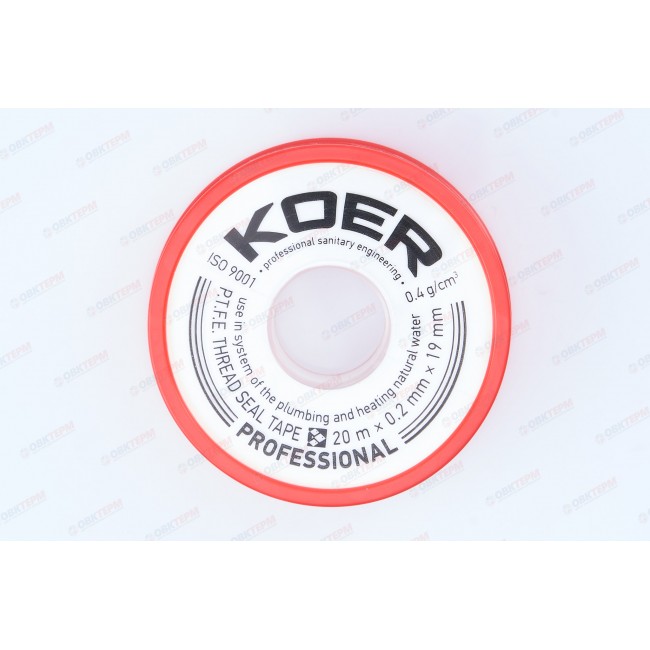 Количество в коробке: 250шт. Количество в упаковке: 5шт. Лента-фум KOER используется как уплотнительный материал в резьбовых соединениях. ФУМ-лента KOER – сантехнического, общепромышленного назначения, пригодная для трубопроводов жидкостей, газов, неагрессивных к полимер тетрафторэтилену (PTFE, тефлон, фторопласт). На поверхность уплотнителя нанесена пленка вазелинового масла. Интервал допустимых температур: –20…+200 °C.