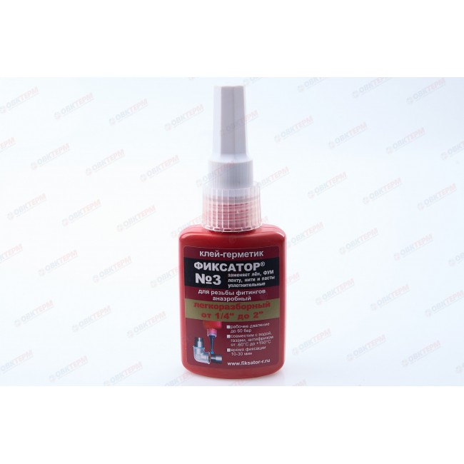 Анаэробный герметик среднего уровня фиксации. Анаэробный клей прменяеться для фиксаци и и герметизации резьбовых соединений, трубопроводных соединений, болтов, винтов и т.д. Область применения -отопление, водоснабжение, ГВС, установки с подачей питьевой воды,а так же воздуховоды и газовые соединения.