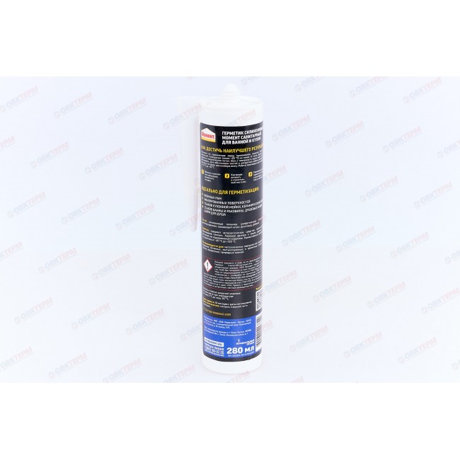 Герметик применяется для эластичной герметизации швов, щелей, проемов в местах повышенной влажности. Имеет силиконовую основу и небольшой запах уксусной кислоты. Устойчив к воздействию УФ лучей и применяется для герметизации кухни, ванных комнат, бань, душевых. Можно использовать как для внутренних, так и внешних работ. Такой герметик не окрашивает склеиваемые детали. Не рекомендуется применять на металлических поверхностях, подверженных коррозии, на бетонных, оштукатуренных и цементных поверхностях, для аквариумов, зеркал и на природных камнях. Данный герметик необходимо хранить в сухих помещениях с температурой от +5ºС до +30ºС.