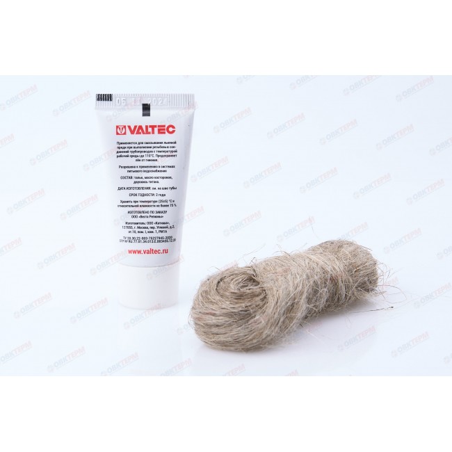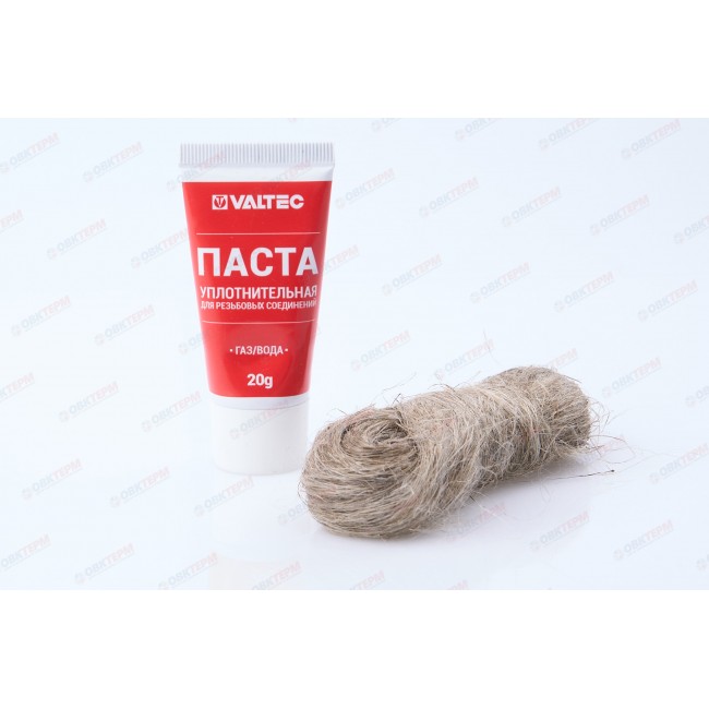 Комплект, включающий сантехнический лен и герметизирующую пасту (20 г), предназначен для уплотнения резьбовых соединений трубопроводов холодной и горячей воды, систем водяного отопления, паровых установок низкого давления. Применение предлагаемых материалов обеспечивает абсолютную герметичность и возможность регулировки трубных соединений. Температура хранения: от –30 до +25 °С.