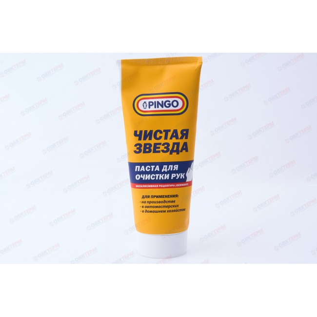 Паста для очистки рук Pingo. Нейтральное средство для эффективной очистки и удаления масла, смазок, типографской краски, графита, плиточного клея, битума, сажи, антикоррозийных материалов, производственной пыли, грязи и других загрязнений с кожи рук. Обладает антисептическим действием, не сушит кожу рук и не вызывает аллергических реакций. Значительно экономичней мыла и других моющих средств.