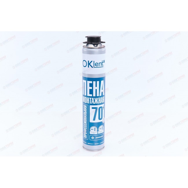 Профессиональная монтажная пена OKlent на основе полиуретана, используется в профессиональных работах по уплотнению, фиксации, герметизации, термоизоляции монтажных швов в кровельных и стеновых конструкциях. Служит для применения в зимний период. Имеет превосходную адгезию ко многим строительным материалам, за исключением полипропилена и полиэтилена. Обладает умеренным коэффициентом расширения, в следствии чего не создает давление на конструкции.
