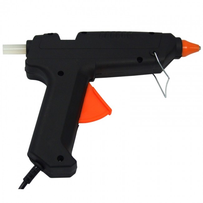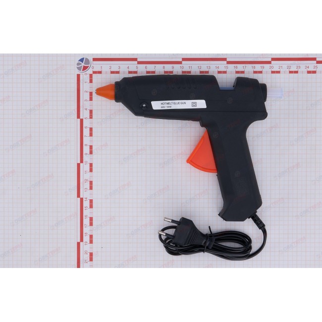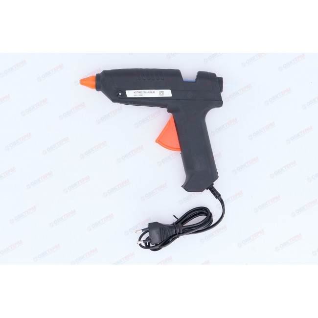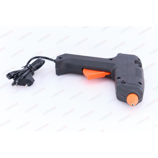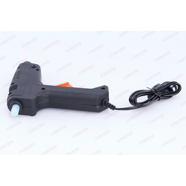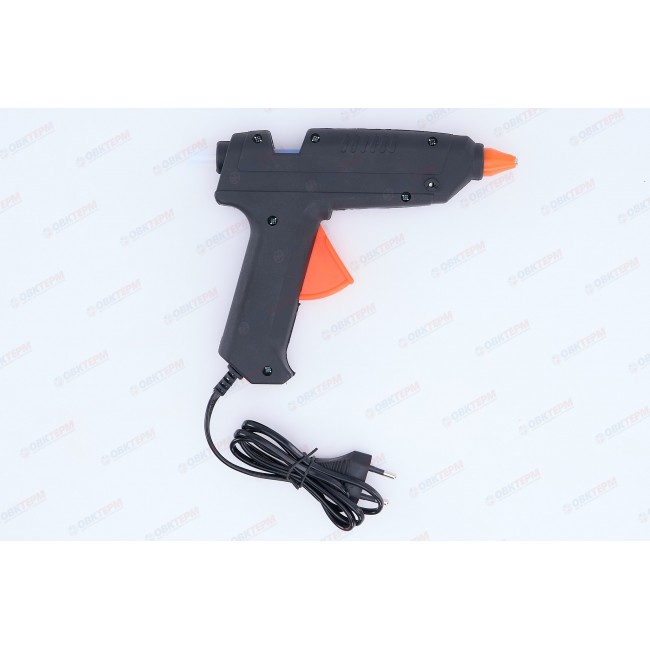 Корпус клеевого пистолета произведен из термостойкой пластмассы, что продлевает срок службы инструмента. Нагрев до нужной температуры происходит за пять минут. Используется во время работ по склеиванию керамических изделий, пластика, бумаги, картона и т.д. Расходным материалом являются тубы диаметром 11 мм. Мощность термоклеящего пистолета составляет 100 Вт.