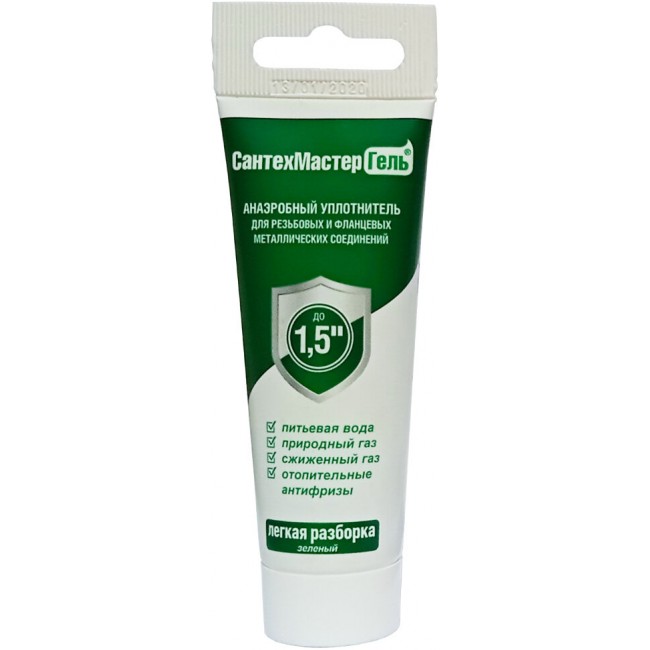 СантехМастер Гель Зеленый 35 г — это резьбовой герметик для металических соединений, созданный для легкого демонтажа соединений, которые располагаются в тяжело доступных местах, где невозможно использовать иные уплотнительные материалы. Он разработан для быстрой и качественной герметизации металлических фланцевых и резьбовых соединений. Данный гель-герметик разработан для труб диаметром до 1,5 дюймов. Соединение, собранное с использованием СантехМастер Гель Зелёный поддается легкому демонтажу без применения нагрева.