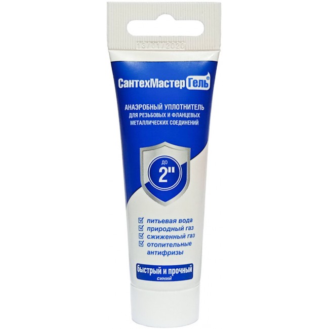 СантехМастер Гель Синий 120 г — это резьбовой герметик для сантехники со средней степенью фиксации соединения. Данный состав рекомендован к использованию для герметизации металлических резьб, фитингов и фланцев. Используется для соединений диаметром до 2". Соединение, собранное на данный гель поддается демонтажу с использованием инструмента.