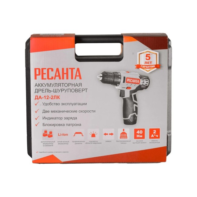 Дрель-шуруповерт аккумуляторная ДА-12-2ЛК Ресанта
