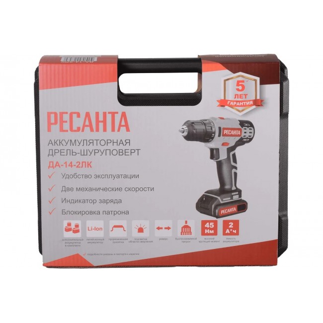 Дрель-шуруповерт аккумуляторная ДА-14-2ЛК Ресанта
