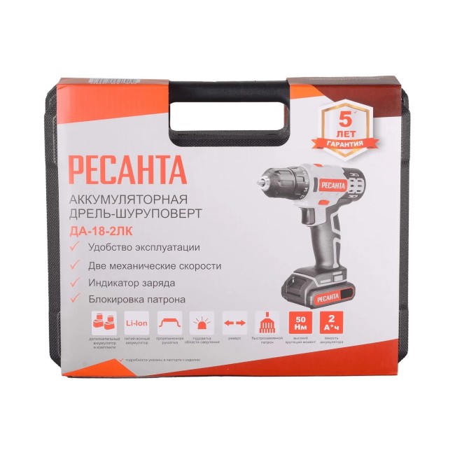 Дрель-шуруповерт аккумуляторная ДА-18-2ЛК Ресанта