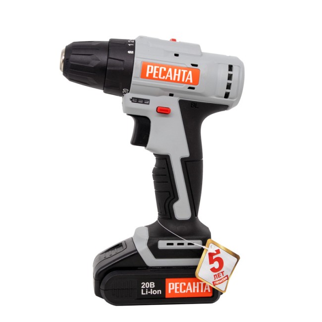 Дрель-шуруповерт аккумуляторная ДА-20-2ЛК-Б (2,0 А/ч) (бесщеточный двигатель) Ресанта используется для просверливания отверстий в деревянных, пластмассовых и металлических изделиях или для работы в качестве шуруповерта. Модель оснащена 2 аккумуляторами и кейсом, незаменима для людей, постоянно использующих дрели-шуруповерты в быту. Прорезиненная рукоять обеспечивает удобное и надёжное удержание инструмента в руке во время работы. Быстрозажимной патрон облегчает замену рабочей оснастки. Двухскоростной редуктор для удобства ведения различных работ. Реверсивный механизм предназначен для быстрого изъятия сверла из материала в случае застревания, выкручивания или ослабления крепежа. С помощью регулировки частоты вращения инструмент можно настроить под необходимую толщину материала. Модель работает от надёжного литий-ионного аккумулятора (Li-Ion).