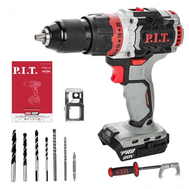 Дрель ударная аккумуляторная Б/Щ P.I.T. PSB20H-13C X-DRIVER SOLO (20В, 110Нм, мет патрон 13мм, 2ск, БЕЗ АКБи ЗУ)