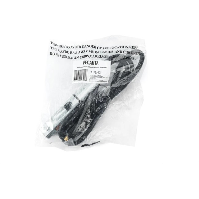 Кабель с клеммой заземления Ресанта предназначен для соединения сварочного аппарата с землей (заземление) во время проведения сварочных работ. Длина — 1.5 м.