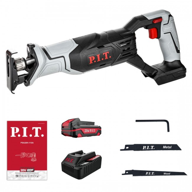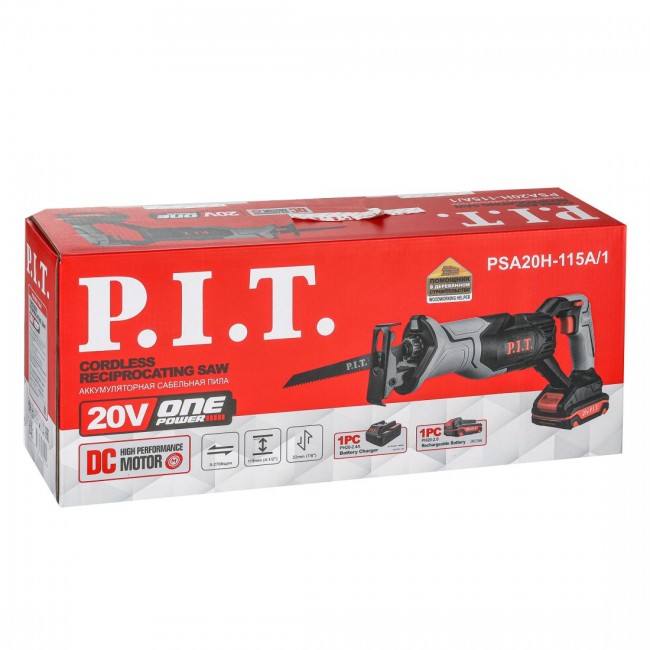 Пила сабельная аккум. P.I.T PSA20H-115A/1 (20В, 0-2700ход/м, БЗП, пропил115мм, ход 22мм,1 АКБ Li-ion 2Ач, ЗУ)