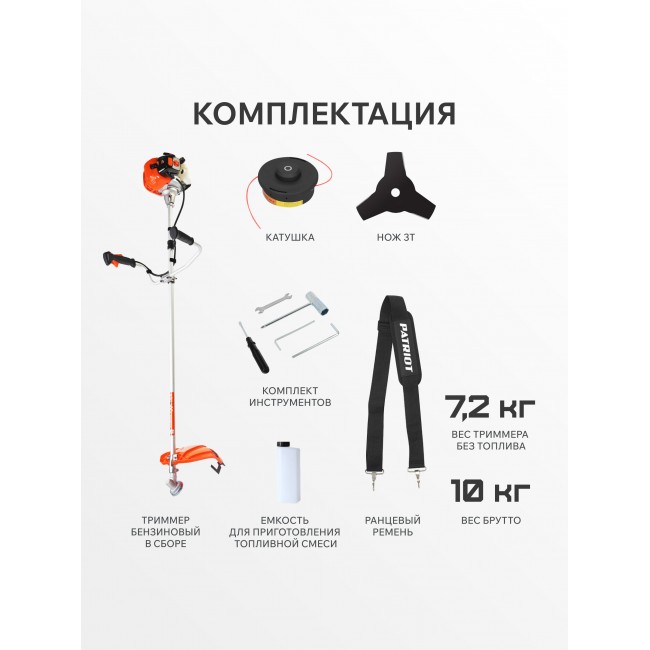 Триммер бензиновый PATRIOT PT 553 3л.с, 52сс, катушка полуавтомат