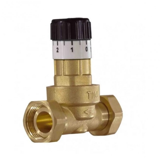 Перепускной клапан прямой с накидными гайками 3/4" TIM используются в закрытых системах отопления для поддержания постоянной разницы давления между подающим и обратным трубопроводом. Они поддерживают постоянное давление на входе в клапан, не на выходе, как редукционные клапаны. Если система радиаторных термостатических вентилей закрывается, происходит уменьшение тепловой нагрузки, что приводит к большему перепаду давления между подающим и обратным трубопроводом.