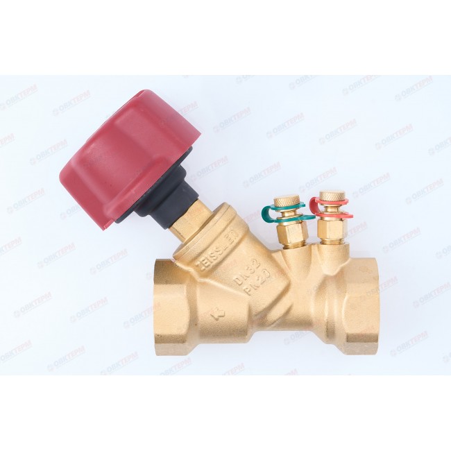 Латунный ручной балансировочный клапан относится к регулирующей арматуре и предназначен для гидравлической увязки между собой отдельных контуров или ветвей (стояков) систем водяного отопления. Кроме систем отопления, клапан может использоваться в системах водоснабжения для ограничения расхода по группам потребителей и балансировки рециркуляционных трубопроводов ГВС. Получение требуемого перепада давления на балансировочном клапане достигается путем изменения проходного сечения клапана. Максимальная рабочая температура – 110 °С. Номинальное давление – 16 бар.