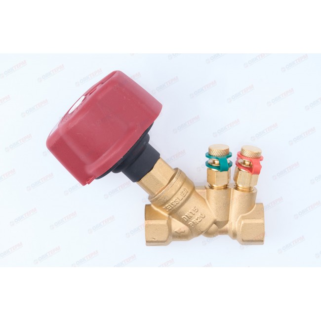 Латунный ручной балансировочный клапан относится к регулирующей арматуре и предназначен для гидравлической увязки между собой отдельных контуров или ветвей (стояков) систем водяного отопления. Кроме систем отопления, клапан может использоваться в системах водоснабжения для ограничения расхода по группам потребителей и балансировки рециркуляционных трубопроводов ГВС. Получение требуемого перепада давления на балансировочном клапане достигается путем изменения проходного сечения клапана. Максимальная рабочая температура – 110 °С. Номинальное давление – 16 бар.