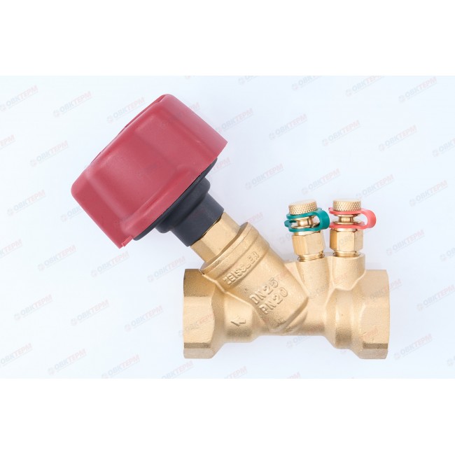 Латунный ручной балансировочный клапан относится к регулирующей арматуре и предназначен для гидравлической увязки между собой отдельных контуров или ветвей (стояков) систем водяного отопления. Кроме систем отопления, клапан может использоваться в системах водоснабжения для ограничения расхода по группам потребителей и балансировки рециркуляционных трубопроводов ГВС. Получение требуемого перепада давления на балансировочном клапане достигается путем изменения проходного сечения клапана. Максимальная рабочая температура – 110 °С. Номинальное давление – 16 бар.