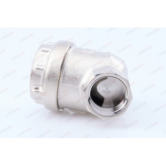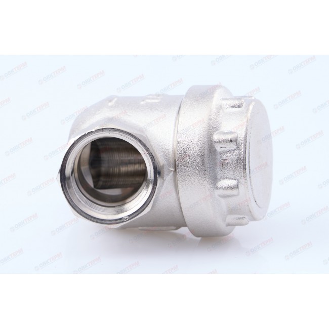 Универсальный фильтр механической очистки. Направление движения жидкости – любое. Благодаря колбе, повернутой навстречу потоку, пригоден для установки на вертикальных участках трубопровода при движении потока снизу–вверх. Корпус и пробка фильтра выполнены из латуни марки CW617N (европейский стандарт EN 12165), никелированы. Между ними имеется прокладка из EPDM. Пробка оснащена отверстием для пломбировки. Размер задерживаемых частиц – от 300 мкм. Максимальная рабочая температура фильтруемой среды – 110 °C.