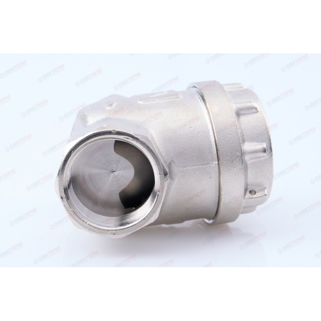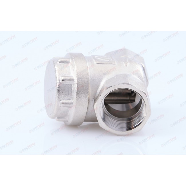 Универсальный фильтр механической очистки. Направление движения жидкости – любое. Благодаря колбе, повернутой навстречу потоку, пригоден для установки на вертикальных участках трубопровода при движении потока снизу–вверх. Корпус и пробка фильтра выполнены из латуни марки CW617N (европейский стандарт EN 12165), никелированы. Между ними имеется прокладка из EPDM. Пробка оснащена отверстием для пломбировки. Размер задерживаемых частиц – от 300 мкм. Максимальная рабочая температура фильтруемой среды – 110 °C. Максимальное рабочее давление – 16 бар.