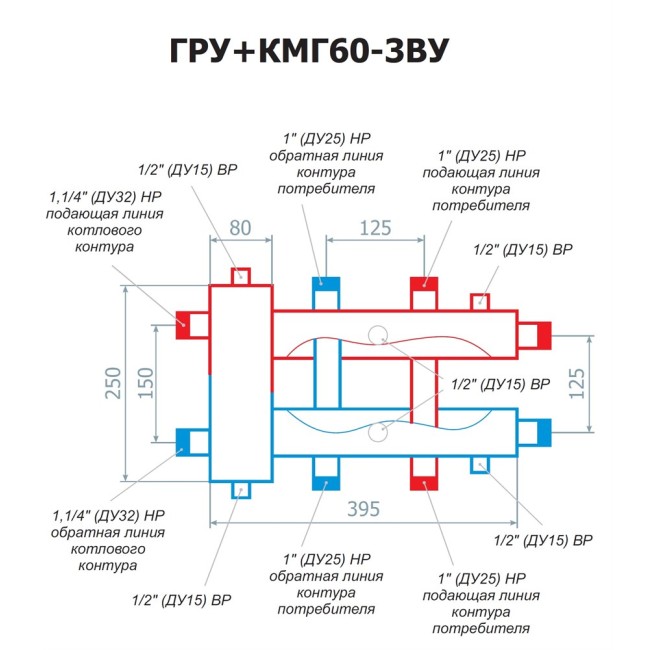 Гидравлический разделитель модульного типа сочетает в себе функцию гидравлического разделителя (гидрострелки) и модуля распределения теплоносителя к контурам потребления. Данная конструкция имеет возможность подключения групп быстрого монтажа различной модификации.