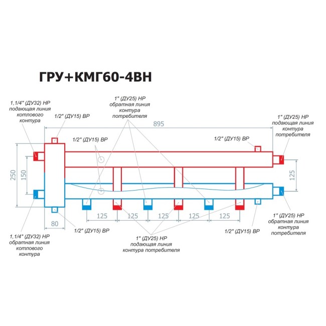 Разделитель гидравлический модульного типа Dial Steel GRM 4х60/ГРУ+КМГ 60-4ВН Rispa