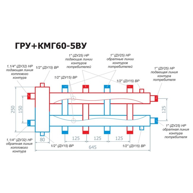 Диаметр патрубков контура потребителей, дюймов | 1" |