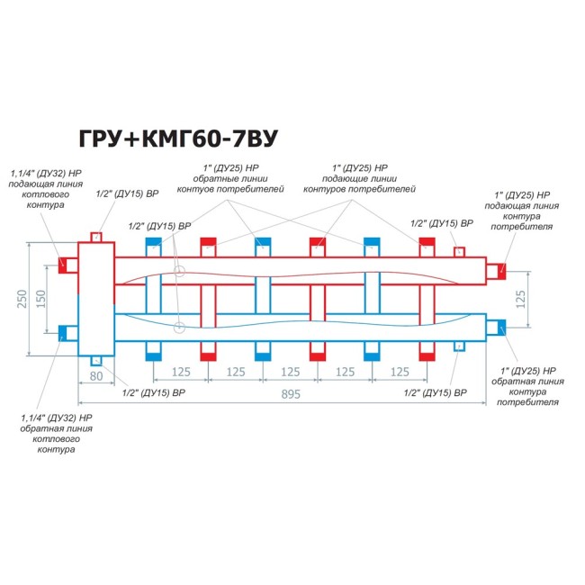 Диаметр патрубков контура потребителей, дюймов | 1" |