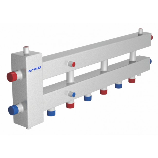 Гидравлический разделитель модульного типа сочетает в себе функцию гидравлического разделителя (гидрострелки) и модуля распределения теплоносителя к контурам потребления. Данная конструкция имеет возможность подключения групп быстрого монтажа различной модификации.