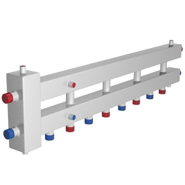 Гидравлический разделитель модульного типа сочетает в себе функцию гидравлического разделителя (гидрострелки) и модуля распределения теплоносителя к контурам потребления. Данная конструкция имеет возможность подключения групп быстрого монтажа различной модификации.
