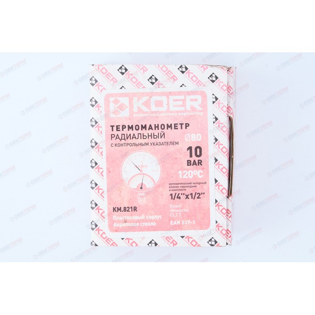 Аксиальный манометр KOER хром это прибор с нижним подключением на оси, максимальное рабочее давление до 10 bar. Манометр измеряет одновременно температуру и давление, он используется как оборудование контроля в отопительных системах, системах водоснабжения и бойлерных установках. Данный манометр имеет в комплекте запорный клапан, который позволяет снимать его без слива системы. Корпус манометра металл, стекло акрил.