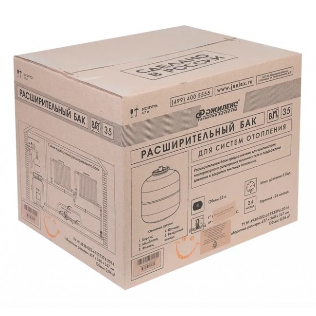 Бак расширительный Джилекс 35 л имеет металлический фланец, вертикальную компоновку и рекомендуется для компенсации температурных расширений теплоносителя и поддержания давления в замкнутых системах отопления. Выдерживает температуру теплоносителя от -10°С до +120°С. Корпус изготовлен из высококачественной стали - 1 мм, покрытой порошковой краской - 120 мкр, устойчивой к истиранию и ультрафиолетовому излучению. Эластичная мембрана изготовлена из EPDM (этилен- пропилен-диен-мономер). Мембраны имеют ступенчатую расширяющуюся форму, которая полностью предотвращает их контакт с корпусом бака. Бак исключает контакт теплоносителя с воздухом. Снабжен воздушным клапаном (ниппелем) с пластиковым колпачком, для контроля и изменения давления.