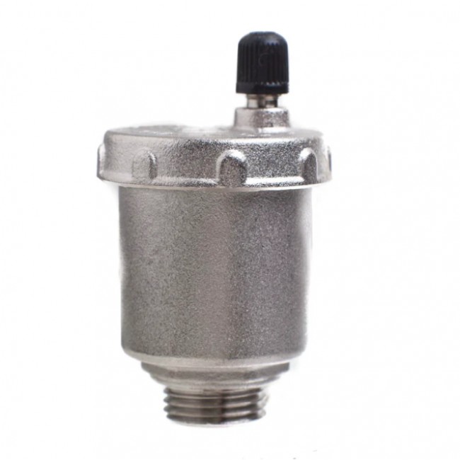 Количество в коробке: 100шт. Авто-воздухоотводчик прямого подключения, для автоматического спуска воздуха из системы отопления, латунный с покрытием никелированным, присоединение: 1/2" наружная.