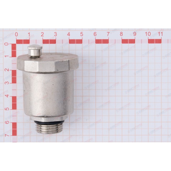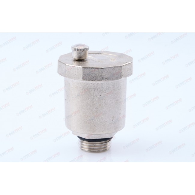 Количество в коробке: 100шт. Авто-воздухоотводчик прямого подключения, для автоматического спуска воздуха из системы отопления, латунный с покрытием никелированным, присоединение: 1/2" наружная.