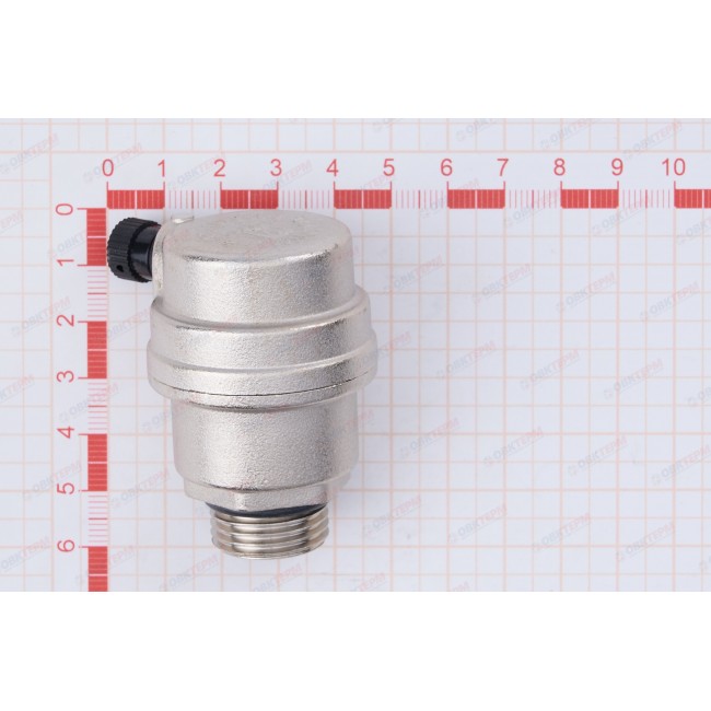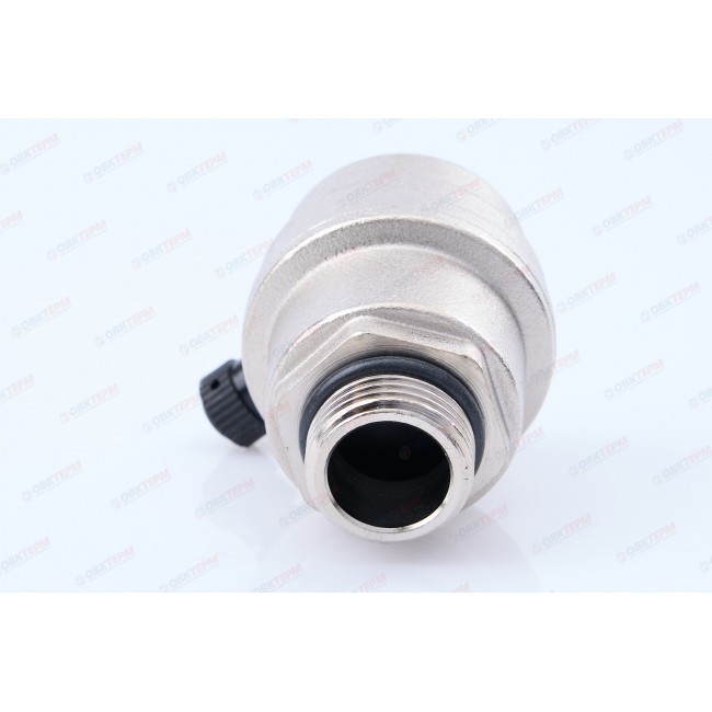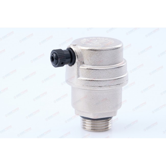 Автоматический воздухоотводчик поплавкового типа с пружинным золотником. Может использоваться на трубопроводах, транспортирующих воду, этилен- и пропиленгликолевый незамерзающий теплоноситель, другие жидкости, неагрессивные к материалам изделия. Ремонтопригодный. Детали корпуса воздухоотводчика выполнены из качественной сантехнической латуни, никелированы. Материал уплотняющей прокладки – эластомер EPDM, поплавка – полипропилен, пружины – нержавеющая сталь AISI 306, держателя золотника и жиклера – нейлон. Воздухоотводчик допущен к применению в системах с рабочей температурой до 110 °С и давлением до 10 бар. Диаметр корпуса воздухоотводчика – 46 мм, присоединения – ½" (резьба – наружная). Нормативный срок службы изделия – 30 лет.
