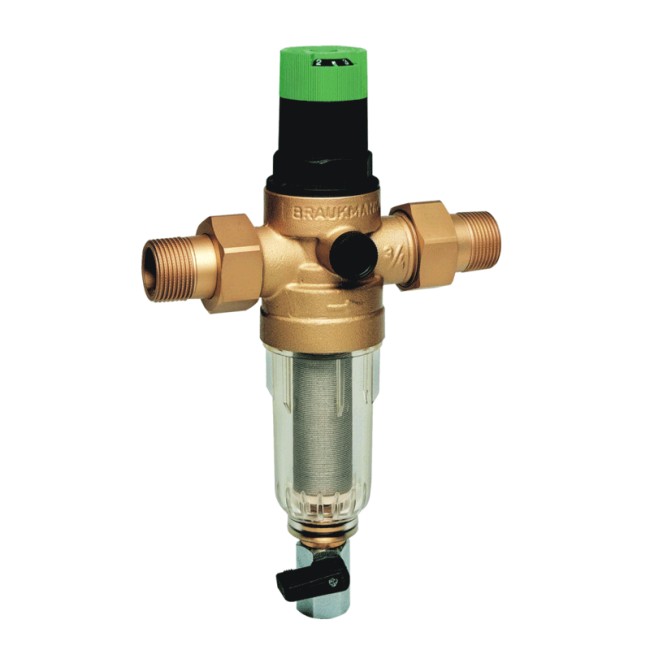 MiniPlus-FK06 представляет собой комбинацию промывного фильтра с клапаном понижения давления. Встроенный в корпус клапан понижения давления защитить магистрали и устройства водопотребления от нежелательных колебаний давления, а также уменьшить расход воды. Выходное давление регулируется в пределах от 1,5 до 6,0 бар. На корпусе с двух сторон предусмотрены посадочные места для подключения манометра, при помощи которого можно визуально отслеживать давление воды на выходе. Регулирующая пружина клапана не имеет контакта с водой. Седло клапана сбалансировано. Принцип действия: