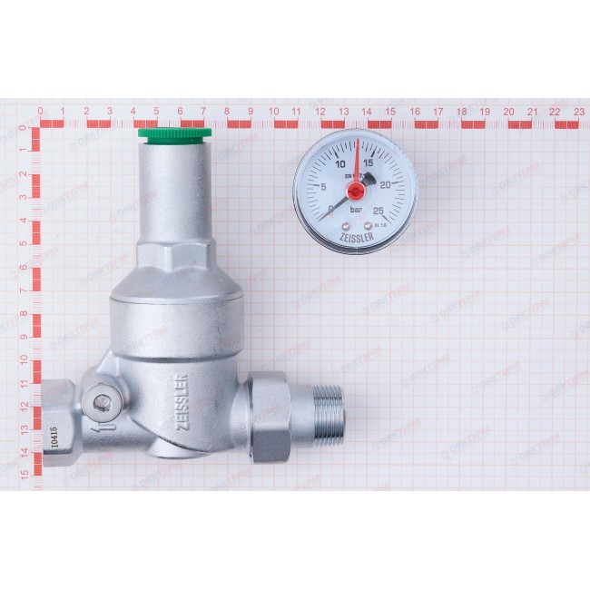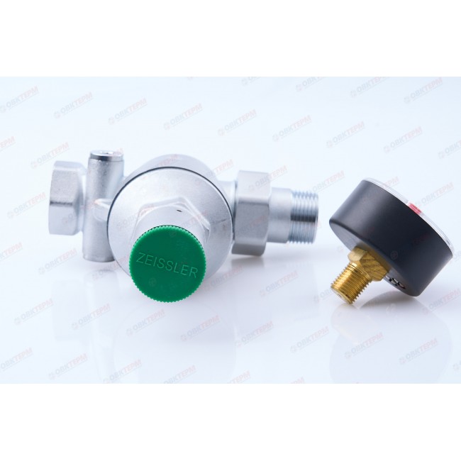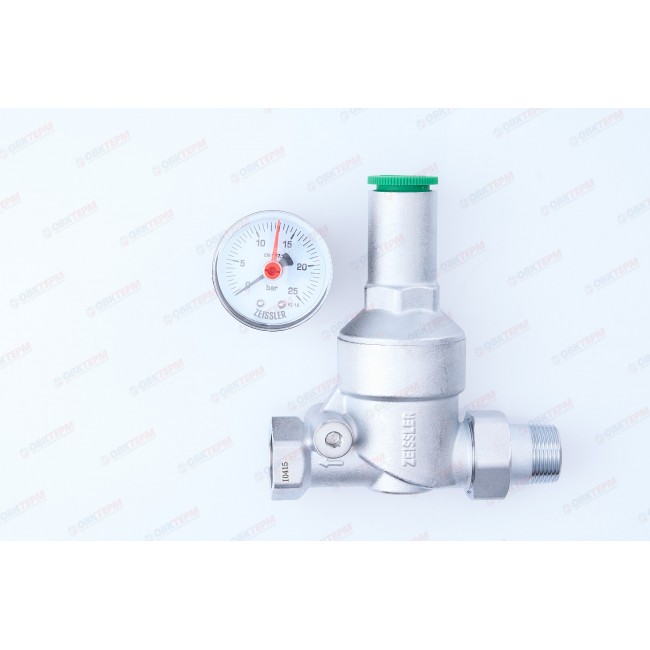 Стабилизирует, а также уменьшает давление в водопроводной сети, защищая тем самым от высокого давления трубопровод и подключённое к нему бытовое оборудование. Его конструкция позволяет легко извлечь картридж регулировки давления. Особенность данной модели заключается в том, что регулятор является мембранным, а не поршневым. Благодаря данной конструкции, выходное давление можно настроить с максимальной точностью.