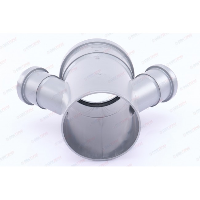 Количество в упаковке: 20шт. Одноплоскостная крестовина СИНИКОН применяется в системе внутренней канализации для соединения трубопроводов. Крестовина с присоединительными размером 110 мм с разветвлением в одной плоскости от вертикальной трубы под углом 45 градусов, оба ответвления на трубу диаметром 50 мм. Рабочая температура до 90 градусов Цельсия, изготовлена из полипропилена, соединение раструбное.