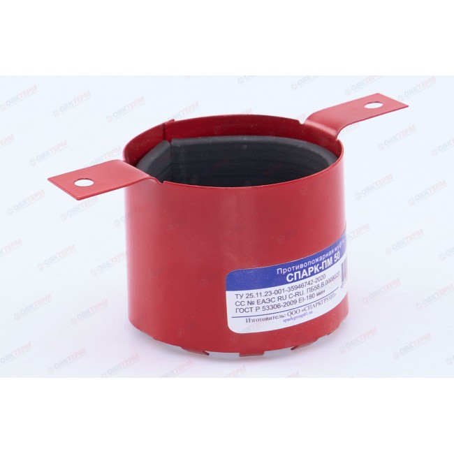 Муфта противопожарная ПМ 50 — защитная отсечка для монтажа на водопроводные и канализационные трубы из пластика, которая препятствует распространению огня и дыма в смежные помещения в случае возникновения пожара в здании. Муфта состоит из металлического корпуса в виде цилиндра с замками-защелками и специального полимерного терморасширяющегося вкладыша. Корпус окрашен красной порошковой краской. Покрытие повышает стойкость устройства к воздействию высоких температур и влажности.