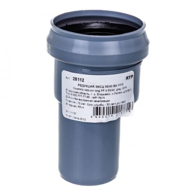 Количество в коробке: 30шт. Редукция предназначена для перехода труб канализационных с большего диаметра на меньший в системах, транспортирующих хозяйственно-фекальные стоки в трубопроводах внутренней канализации.