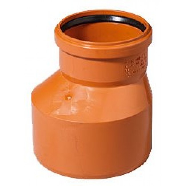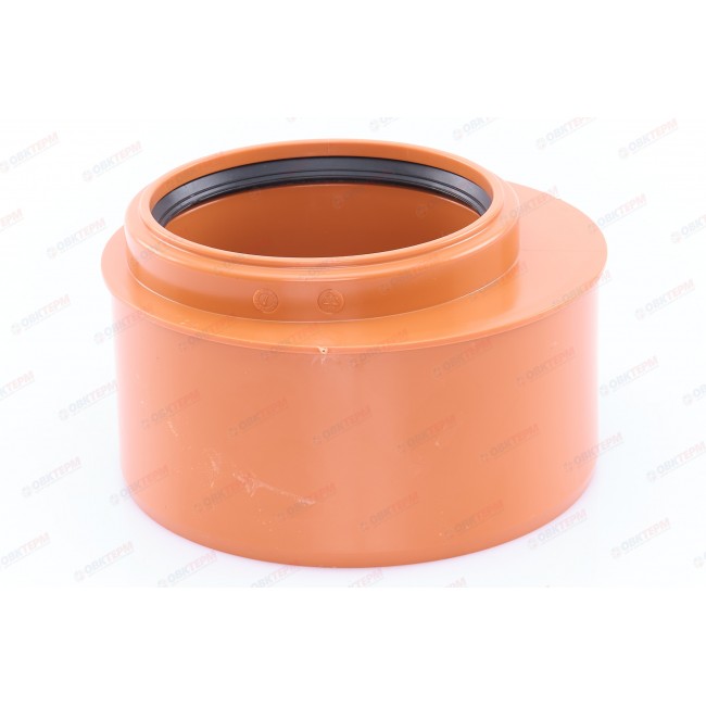 Редукция для наружной канализации предназначена для перехода труб канализационных с большего диаметра на меньший в системах, транспортирующих хозяйственно-фекальные стоки в трубопроводах наружной канализации. В качестве уплотнителей используются резиновые кольца манжетного типа с распорным вкладышем.