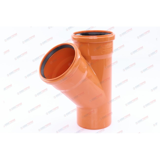 Количество в коробке: 24шт. Тройник канализационный Ростурпласт для трубы диаметром 110 мм. Имеет выход под трубу диаметром 110 мм под углом 45 градусов. Применяется при монтаже систем наружной канализации. Соответствует нормативным требованиям ТУ 2248-002-78044889-2010