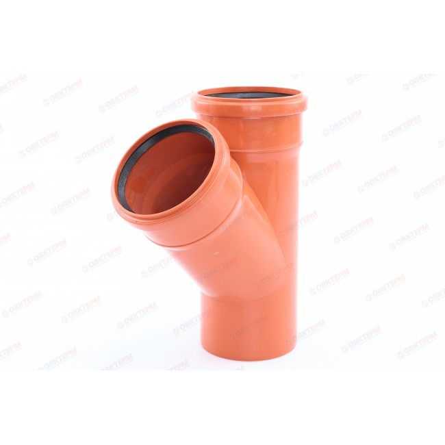 Количество в упаковке: 10шт. Предназначен для разветвления потока воды на два направления в одной плоскости. Используется с трубами канализационными внутренними диаметром 110 мм. Обеспечивает отвод на 45º.
