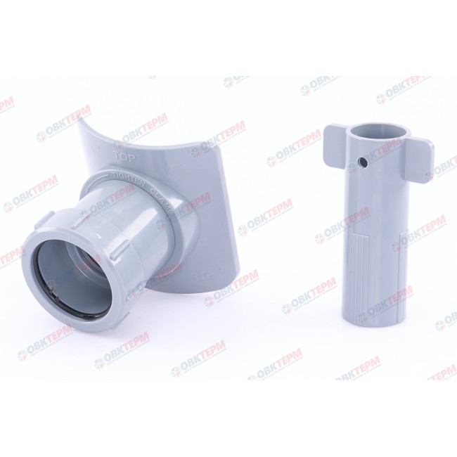 В существующей магистральной трубе, расположенной вертикально или горизонтально, делается отверстие и устанавливается врезка. При помощи ключа (в комплекте) герметично затягивается. Гладкий конец 50 трубы надежно фиксируется компрессионной гайкой врезки.