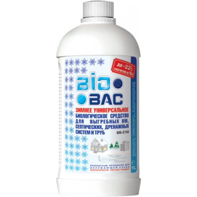 Новейшая разработка компании «БиоБак» ЗИМНЕЕ УНИВЕРСАЛЬНОЕ БИОЛОГИЧЕСКОЕ СРЕДСТВО ДЛЯ ВЫГРЕБНЫХ ЯМ, СЕПТИЧЕСКИХ, ДРЕНАЖНЫХ СИСТЕМ И ТРУБ BB- Z150 является первым и единственным средством зимнего действия на рынке биопрепаратов. Уникальная, сверхконцентрированная ассоциация бактерий деструкторов, в сочетании с питательной средой, позволяющей микроорганизмам быстро адаптироваться при низких температурах, обеспечивает бесперебойное функционирование выгребных ям, септических, дренажных систем и труб в зимнее время.