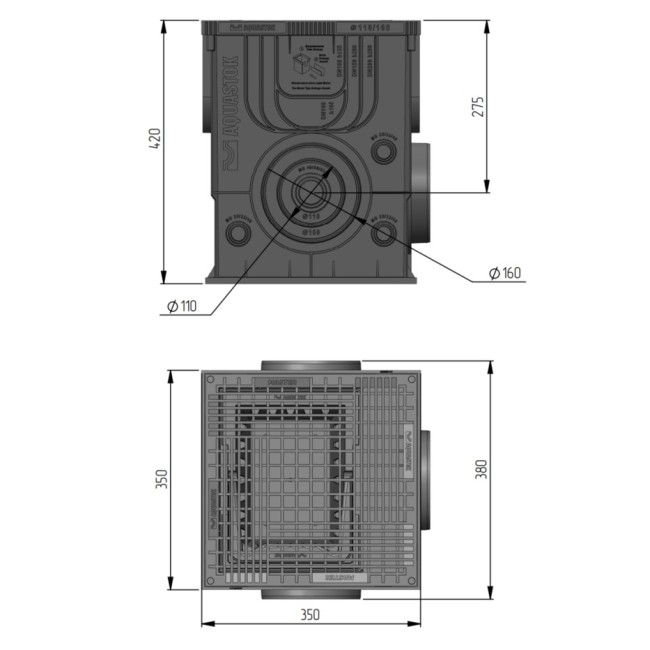 Дождеприемник пластиковый в сборе с решеткой 350х350х420 Аквасток