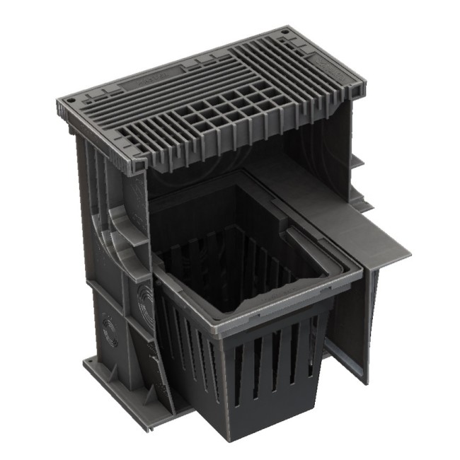 Малый вес облегчает транспортировку и монтаж изделия. Заранее предусмотрены места для подключения канализационных труб. Нарастить необходимую высоту дождеприемника можно путем установки дождеприемников один на другой по высоте. Это позволит подключать канализационные трубы ниже глубины промерзания почвы, организовать ревизионный или дренажный колодец. Имеется корзинка для сбора мусора. Песок и листва останутся в этой корзинке и не попадут в канализацию. Установка перегородок позволит организовать гидрозатвор, препятствующий распространению запаха канализации. Ударопрочность и устойчивость к воздействию ультрафиолетового излучения. Высокая морозостойкость позволяет эксплуатировать изделие в широком диапазоне температур, от + 95°C до - 45°C. Стойкость к агрессивным средам и веществам. Соответствие классу нагрузки B 125 (дороги, парковки с малой интенсивностью движения легкового транспорта)