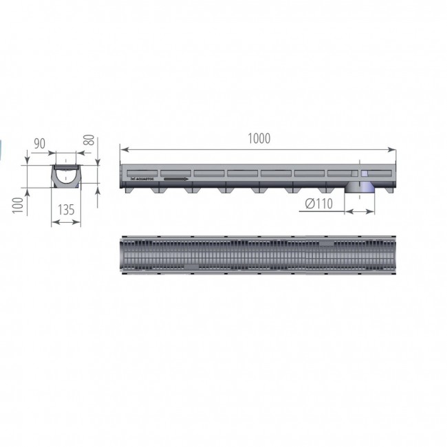 Каналы серии «Aqua-Top» поставляются в сборе с пластиковыми и оцинкованными решетками. Это самая экономичная серия пластиковых каналов. Не требуют специальных фиксаторов решетки. Рекомендуются к установке в пешеходных, парковых зонах, частных домовладениях, на въездах в частный гараж легкового транспорта. Есть два исполнения данного канала, с пластиковой и штампованной оцинкованной решеткой. Класс нагрузки А15.